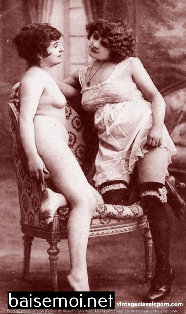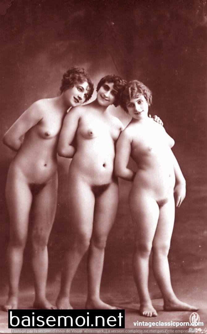 De belles femmes françaises montrent leurs jolis seins et leurs chattes taillées dans une scène vintage. Photo Porno En Noir Et Blanc