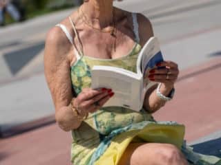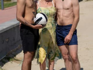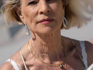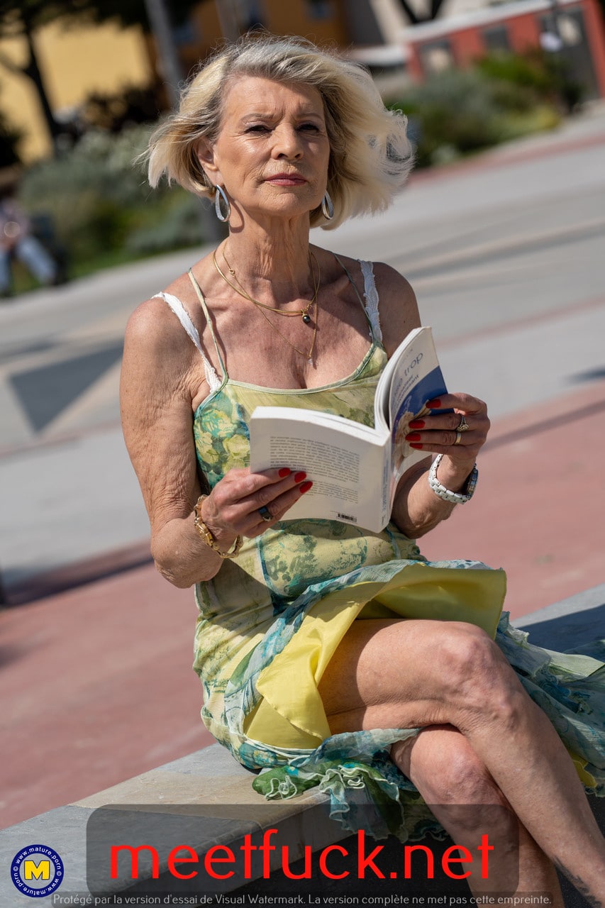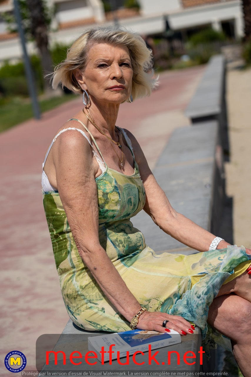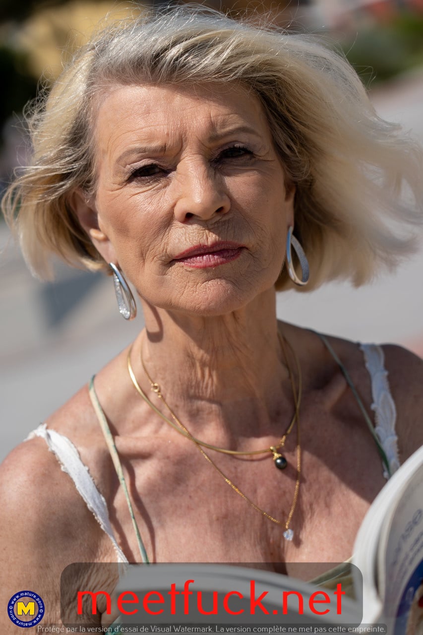 La mamie blonde Eva Delage expose ses jolis seins et prend deux bites en profondeur.